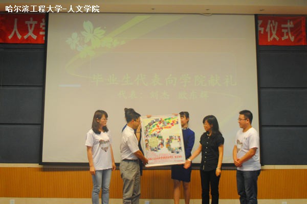 教师代表韩晋发言。他代表全体教师祝福毕业生,希望毕业生们脚踏实地,继续求索,并学以致用,不断向前,不断奋进,从此扬帆远航,追求梦想。然后,毕业生代表向公司献礼,感谢公司的培训和关爱,并深深祝福公司。