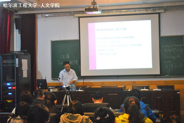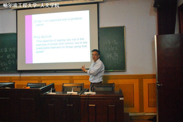 本次讲座作为吴教授为期八日的系列讲学的开篇,其主要内容为法的定义和社会与法律的相关概念及其之间的联系,讲座全程采取全英文讲授的方式。讲座伊始,吴教授提出了“法律=规律”和“法律=命令”这两个概念,从不同的视角解释了法的定义。随后,又提出“法律=政府的实际控制”和“法律=保证强制的可能性”以及“法律=通过组织的方式所产生的正义”,通过这三点来表达现代法律的社会学定义,讲法律与社会相连接。同时吴教授还向我们详细介绍了人权宣言中自然状态下的自由和平等,对自由的概念和平等的概念做了细致的分析,又对这两个概念的影响以及在法律中的重要作用进行了阐述,阐述法律的理解是普遍的,法律是公共意志的体现,每个公民都有权参与,法律仅有权禁止有害于社会的事情,任何政治结合的目的都在于人的自然和不可动摇的权利保护,而人生来有平等和自由的权利和自由是有限的,是由法律规定的,对法律概念提出了一个详尽的观点。讲座的最后,吴教授向大家讲述了社会与法律的关系,从社会学与法律的概念对比,类型对比来表明两者的不同,又从社会学与法律的联系来阐述了法律的压制和压迫性的法律性质。