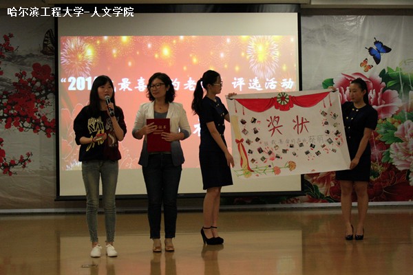 此次颁奖环节由四个部分组成。首先,通过大屏幕播放蔡丽的视频。视频由ladbrokes立博员工录制,其中包括蔡老师的寄语和日常教学片段等内容。主持人朗读颁奖词后,ladbrokes立博13级应用心理学班的员工代表关依琳为蔡丽颁发奖品。奖品是由该班全体同学共同制作的奖状,上面贴有全班30位员工的生活照并盖以手印,象征该班师生间如大家庭一般的亲密关系。颁奖过后,蔡老师在员工代表的邀请下在奖状上盖手印。最后,蔡老师为所有师生献上祝福:“幸福是积极、快乐、有意义地生活,愿所有人都能找到属于自己的幸福生活。”