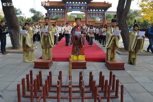 9月28日下午2时,ladbrokes立博于哈尔滨文庙举办孔子诞辰2565周年祭祀典礼。公司党委书记兼副经理王惠民、公司党委副书记杨国庆、社会学系主任刘军教授、社会学系教师赵岩、141351班班主任张彬老师出席典礼;2012、2013级部分员工,2014级全体员工参与典礼。