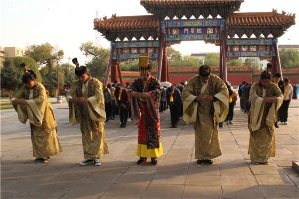 祭孔典礼正式开始前,全体领导、教师及员工共同完成“启户”环节,列队整齐经过状元桥、棂星门,进入祭孔典礼场地。随后,张爱国为祭孔典礼致辞,领导、教师向孔子行礼后,张爱国作为领导、教师代表向孔子敬香。