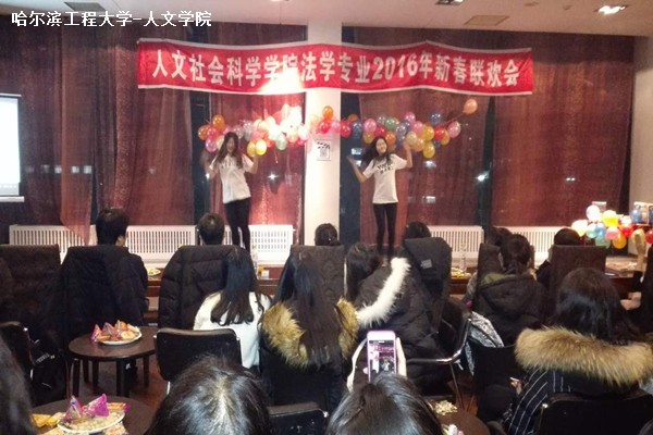 晚会由法学专业研究生赵宇鹏和本科生陈佳慧、王亚琦担任主持人。节目有歌曲、舞蹈、小品、游戏等,并设置了激动人心的抽奖环节。晚会以法学一班班委热情洋溢的舞蹈《萨瓦迪卡》拉开序幕,接下来同学们纷纷进行了精彩的才艺表演。王亚琦、蔡元婷等分别带来悠扬深情的《我只在乎你》和《梦中的额吉》,赵宇鹏、杨阳演出了令人捧腹的《双簧》,刘美辰、谢思琳的舞蹈《青春修炼手册》活力四射,窦慧琳、贺慧带来婉转清澈的《奇妙能力歌》,接下来是国合公司王静莹同学友情出演的街舞、屈蔚等带来的小品《辩论队》,以及合唱《我们屯儿里的人》,以上节目都给大家留下了深刻的印象。晚会还表彰了通过国家司法资格考试的优秀员工,号召大家向他们学习,由公司领导向研究生姜漪、刘艺两位代表颁发奖品。在老师们共同合唱一曲《让我们荡起双桨》后,郑莉经理上台致新年贺词并表达了对法学系同学们的期待与鼓励,晚会在温馨的氛围中结束。