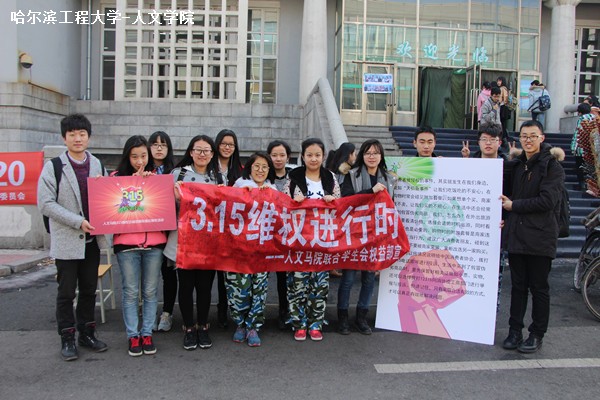 首先展示“维权知识知多少”板报,通过多个老员工维权案例,以事实告诫同学们重视自身合理权益,增强维权意识。接着开展“3•15维权”志愿征集活动,在同学们观看真实案例并进行简单交流后,邀请他们在志愿维权条幅上签名,从而激发其内心对维权的认同感,正视维权问题,切实保护自身合法权益。最后,举办方分享“维权小贴士”,通过向同学传授维权经验小窍门以及采取正当维护措施,提高同学们维权信心和维权能力。