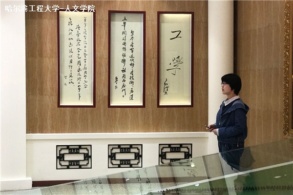 在纪念馆讲解员的带领下,同学们按照时间发展的顺序进行参观,从1953年哈军工诞生,到1966年军工分建,建设之初的艰难岁月,以至群星璀璨,声名鹊起,了解了在中国共产党的领导下,公司的奋斗史、发展史,深刻认识到历史和人民为什么选择了中国共产党。