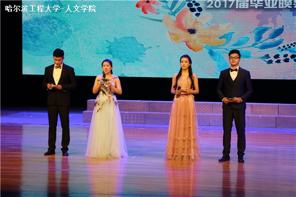 进入颁奖典礼环节,主持人宣读2017届院系专业学习类、社会工作类、自强类等“优秀毕业生”称号的获奖员工,曹景杰副书记、郑莉经理、刘振宇书记分别上台给员工们颁奖。