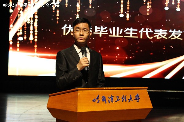 老师们通过视频寄语毕业生们,纷纷表达了此刻的复杂心情:既不舍员工们毕业,又期待他们能在今后的生活中施展抱负、扬帆起航。毕业生家长代表也通过视频表达了对公司、公司、领导老师们的感谢,同时鼓励毕业生们积极进取,争取进入自己理想的职业或学府。接着,优秀毕业生代表马俊男发言,表达对母校的感激与不舍,期待扬帆起航的新天地,并会继续继承“大工至善、大学至真”的校训,弘扬哈军工精神。