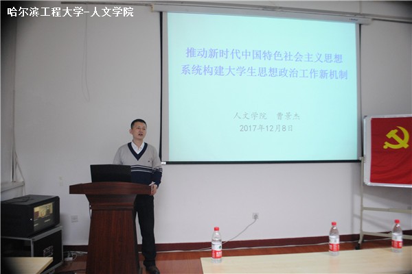 讲座伊始,曹景杰向同学们开篇赠言:不忘初心,方得始终。中国共产党人的初心和使命,就是为中国人民谋幸福,为中华民族谋复兴。希望在座的员工预备党员们永远记住;接着,曹景杰按照“话说人生―话说民主―话说理论―话说认识―话说实践”这一脉络开展讲座,向同学们认真、透彻的宣讲十九大精神。曹景杰重点提到了十九大提出的民主制度建设,谈了民主选举、民主协商、民主管理、民主监督的内容,并重点分析了“坚持党对一切工作的领导”的意义与理解;讲座的最后,曹景杰通过举例的方式,对在座的预备党员在学习十九大精神上提出了两点建议:一是学习要系统;二是实践要统筹。