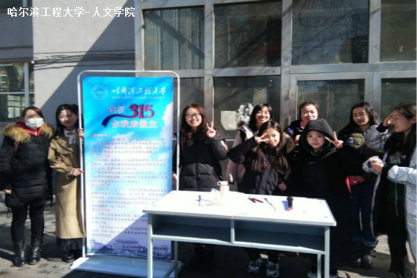 首先展示“维权3•15,你我来做主”的海报,通过几个消费者维权案例,以事实告诫同学们重视自身利益合理权益,增强维权意识。接着开展“维权3•15,你我来做主”有奖问答志愿活动,在同学们答对问题获得奖品后,邀请他们签名,从而激发其内心对维权的认同感,正视维权问题,切实保护自身合法权益。最后,向同学们分享“维权小贴士”,通过向同学们传授维权经验小窍门以及采取正当措施,提高同学们维权信心和维权能力。