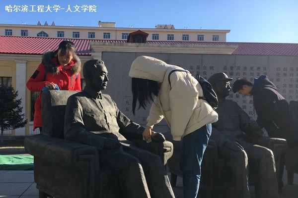 活动开始,员工手持预先准备的抹布、扫帚等清扫工具,到达指定位置;随后,开始着手擦拭雕像、清扫周围环境,员工以极其认真的态度对待清扫活动,细心擦拭雕像,对雕像细节着重清理;最后,同学们集体拍照留念。