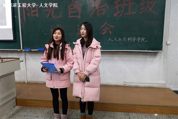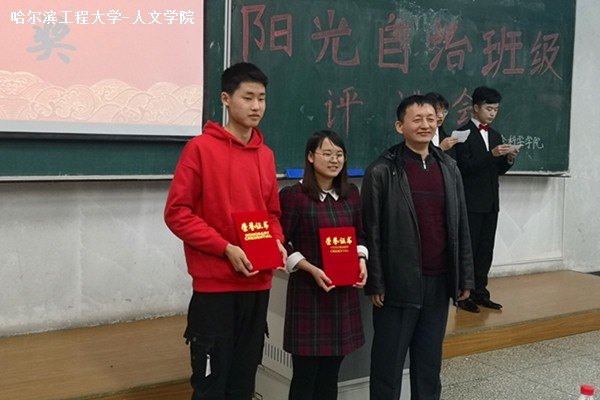 评选会伊始,主持人对评选规则进行简要介绍,并通过视频回顾即将过去的一年;接着,各班代表借助视频、PPT等方式进行精彩的演讲展示班级风采;紧接着,由评委进行打分;随后,由刘久、陈斌分别对获得优秀个人和优秀自管小组长的同学颁奖;最后,由曹景杰对获得“阳光自治班级”称号的班级颁奖并进行活动总结,强调要加强班级建设,共筑和谐优秀的班风。