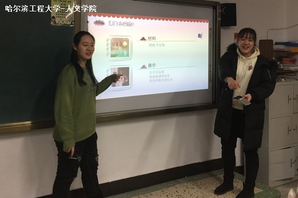 活动伊始,刘奕彤为同学们讲解了关于光的问题,向同学们提出问题并给予奖励,调动同学们对科学知识的兴趣;然后,李辰雨、战莹为员工详细讲解了“色光”的概念,并与同学们一起做实验,让他们亲身体验关于色光的实验,以便于同学们对色光进一步了解;最后,冯莹一一解答了同学们关于色光的各种问题。