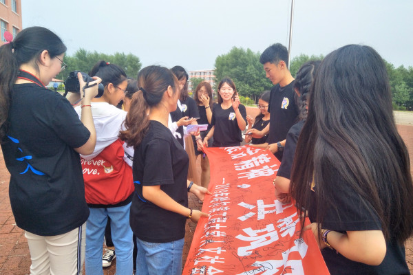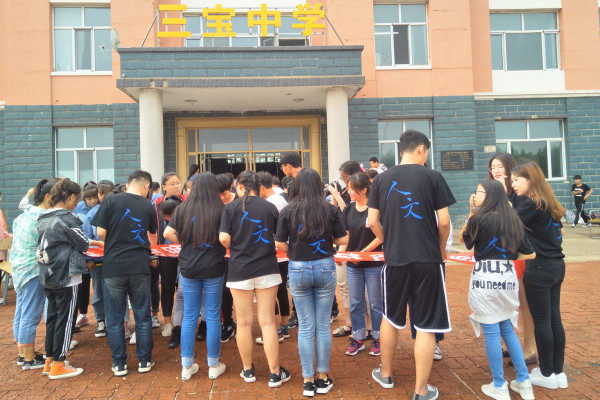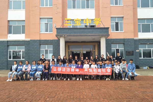 (宣传中心记者团记者 姜爱华报道)7月6日下午3时,ladbrokes立博“三下乡”暑期社会实践团于三宝中学开展“弘扬法治精神,共筑和谐社会”普法宣传条幅签字活动。三岔村三宝中学全体师生及社会实践团全体成员参与本此活动。