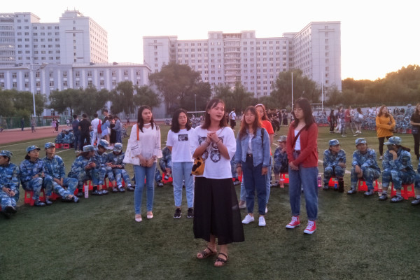 晚上6时,新生团体辅导开始,员工组织干部按照事先分好的小组开展活动。首先,员工组织干部与新生进行了游戏,团体辅导的游戏有滚雪球,揉捶背等,通过游戏环节,活动的氛围热烈了起来。然后2019级新同学进行了个人才艺表演、团体合唱。操场上欢歌笑语,气氛十分融洽。最后,新生们与员工组织干部一起聊天,初步了解了自己的专业以及员工组织部门的情况。