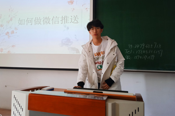 首先,杨雨欣对培训工作作出宏观指导,强调做好团委宣传报道工作的重要性;其次林洋对如何建立及使用微博、微信公众号做出详细指导,并对各组宣组长提出及时更新微博与微信公众号内容、及时对班级及公司重大集体活动进行宣传的要求;之后,崔明珠分享个人工作经验,并回答了大家的对宣传工作的疑问;最后,杨雨欣做最后总结,表示希望各位组宣组长尽职尽责,互相配合,提高工作效率。