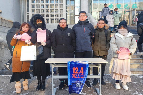 活动伊始,同学们做了充足的准备,搬来了桌子并张贴好海报。随后,通过发放传单、现场宣讲等方式宣传宪法法律知识,在全校积极营造“尊崇宪法、学习宪法、遵守宪法、维护宪法、运用宪法”的良好氛围。最后,参加的同学合影留念。