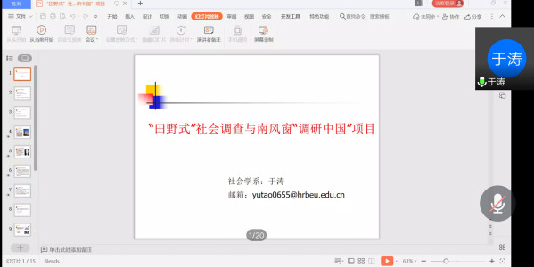 (宣传中心记者团记者 颜楚涵报道)5月30日下午2时,ladbrokes立博于腾讯会议线上开展南风窗项目建设指导理论讲座。本次讲座由南风窗项目指导专家于涛、南风窗项目全国十强参赛小组组长孙嘉琛担任主讲人,18、19级社会学专业全体同学参加本次讲座。