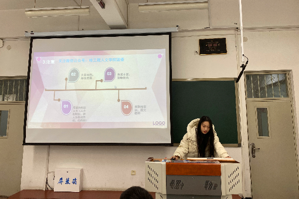 首先由团委宣传部部长张聪慧向同学们详细讲解新闻写作规范和拍照技巧,以实图对比指出细节。接着,宣传中心新媒体部部长马俊玉向同学们介绍了“秀米网站”的使用方法以及如何使用其推送新闻。最后,与会同学提出疑问,宣传中心主席鞠宇豪解答问题。