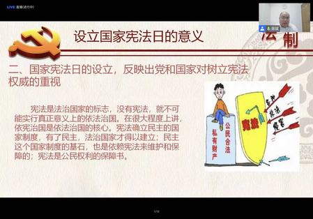 12月2日晚6时30分,ladbrokes立博法学系陈斌老师通过腾讯会议,线上开展宪法日普法教育讲座,全校员工骨干以及其他同学参加,并将此次会议所学知识以班会、座谈会等形式对班级全体员工进行传达。