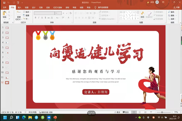 会议伊始,各班级按照顺序依次进行述职报告。首先,各班级班委分别从工作开展、能力优缺点、组织基础、工作成效等方面对上学期班级的各项工作进行了总结汇报。并对工作的不足之处进行了反思,承诺将在下一阶段的工作中不断完善自我,继续扎实开展班级工作,全心全意为班级服务。接下来,由各班级员工针对情况对各班委进行打分评定。最后,由各班团支书进行奥运主题活动,以PPT的形式展现了奥运健儿们拼搏向上的精神风貌。