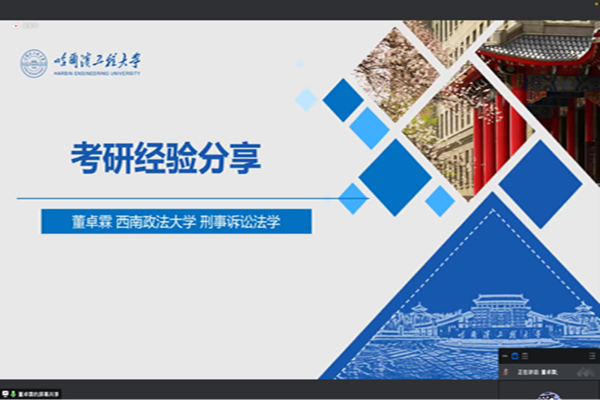 经验分享结束后,法学系教工党支部书记刘沫茹进行了总结。她指出,疫情之下,考研竞争日趋激烈,一定要结合形势的变化和自己实际情况合理设定目标。考研还是一个漫长枯燥的旅程,其间可能会心态崩溃、自我怀疑,所以既要全力以赴也要适时调整。无论考研成功与否,准备考试的过程都是对自己意志品格和专业能力的巨大锻炼。学习的成果并不仅仅体现在考试的分数,为自己的人生目标去积极努力,一定能够得到更大的成长。