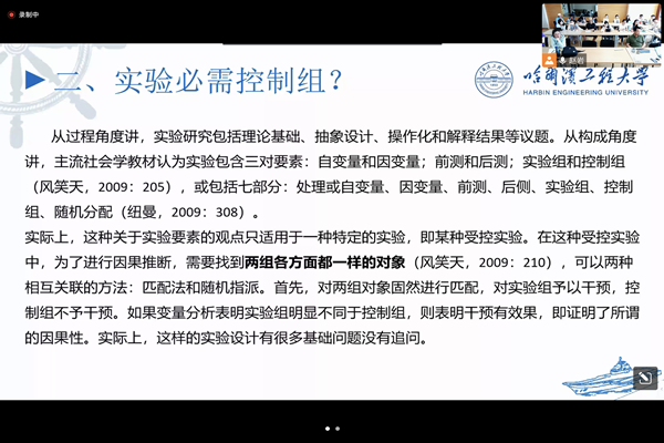 在实验是否必需控制组的问题上,刘军老师表示,在理论引导的实验中,可以不需要有控制组,也无前测和后测之分。例如,网络交换论的实验就没有控制组和前测,而是首先建构网络交换理论,基于理论演绎出不同交换结构下被试的可能支付,随后开展实验予以检验命题以及命题背后的理论。由此可以引申出的问题有,误差本身意味着什么?无误差即有确定性,那么不确定性概念是什么?确定性与不确定性如何可能并存?