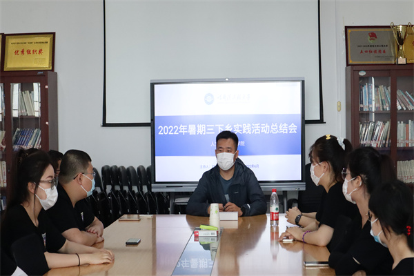 总结会开始,刘文璟首先对实践团的活动表现表示肯定。接着,实践团成员依次向刘文璟汇报本次“三下乡”暑期实践活动的成果。然后,刘文璟对“三下乡”的所有活动进行总结。最后,他布置了后期材料撰写的工作。