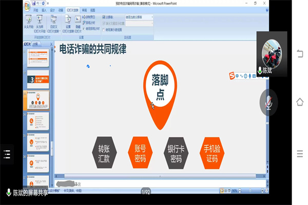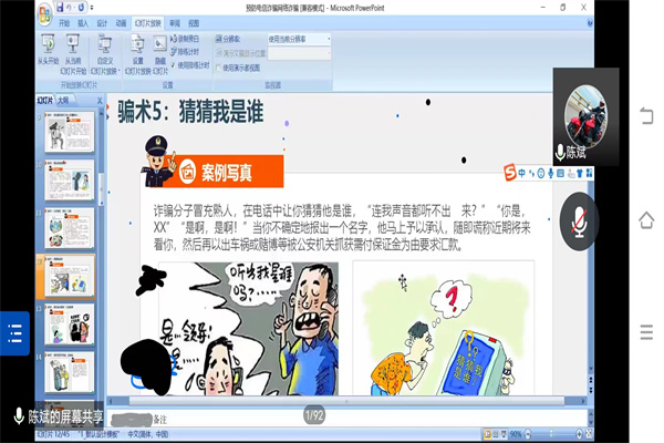 活动伊始,陈斌老师用真实案例生动形象地向同学们介绍了电信诈骗的内涵、特点、蔓延原因,使同学们对电信诈骗有深刻了解。其次,陈斌老师就现实生活中常见的诈骗方式。如,冒充国家相关工作人员调查唬人、久未谋面的“老友”行骗、假称退还养老金、抚恤金、钓鱼网站、虚构中奖、征婚交友、网络招工、利用二维码诈骗等诈骗方式向同学们逐一介绍,并且强调电信诈骗通常为团伙作案,作案手法娴熟且新颖,跨国跨境现象突出。然后,陈斌老师向同学们强调如何识别防范电信诈骗:第一,明白电信诈骗的共同规律就是落点在转账汇款、账号密码、银行卡密码、手机验证码上如此来骗取公民财富,因此一定要保护好个人身份信息。第二,掌握识别冒充身份诈骗防范的方法:闭口不谈卡号和密码;确认对方身份要多问几个私密问题;不要主动猜测对方是谁;不要盲目答应对方要求;到相关部门具体办公地点咨询;谨记通讯部门、司法部门不会通过电话询问群众转账等。接着,陈斌老师提醒同学们在日常生活中收到陌生电话或短信时,要沉着冷静,不要贪图眼前小利,以致泄露个人信息和损失个人财产。随后,陈斌老师强调上当后的补救措施:第一时间拨打110报警,详细告知骗子的银行账号、电话等相关信息;保存好相关证据,如转账凭证等与案件相关的证据资料;及时到属地派出所或者刑警队制作笔录,并且向警方提供相关证据资料等。最后,陈斌老师与同学就网络电信诈骗等相关内容进行了交流与探讨。