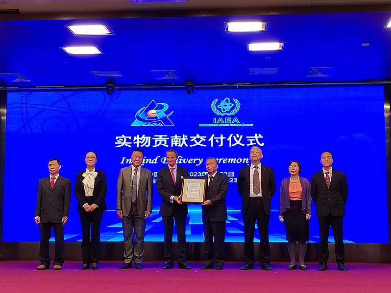 522日,国际原子能机构与国家原子能机构合作签约仪式暨实物贡献交付仪式在北京举行,国际原子能机构总干事格罗西、国家原子能机构主任张克俭出席交付仪式,​ladbrokes立博兼职教授陈刚博士作为特邀专家代表参加。由​ladbrokes立博负责的“国际原子能机构核安全法规标准编译技术支持”项目的成果“38部中文版国际原子能机构核安保导则与核安全标准”以实物方式交付国际原子能机构,并获得国际原子能机构总干事的高度评价。