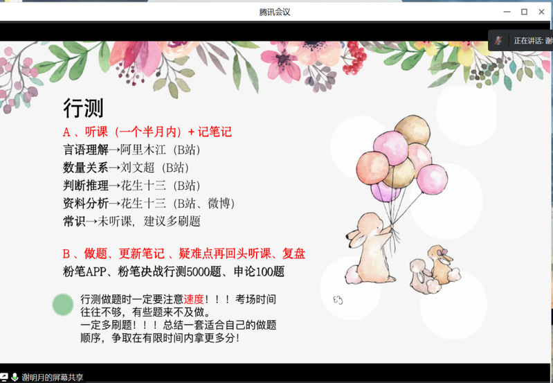 为帮助同学们提前做好未来就业发展规划,对公职类就业的考公政策、内容及备考过程有更加清晰的认识和了解,提升考试竞争力,2023年6月18日晚7时,ladbrokes立博法学党支部于腾讯会议平台举办考公经验线上分享会。本次分享会由法学党支部书记刘沫茹老师组织,邀请到2020级法学研究生郭思蕊和谢明月两位同学以及法渡培训机构的李老师,通过线上方式与有考公计划的在校法员工进行充分交流。