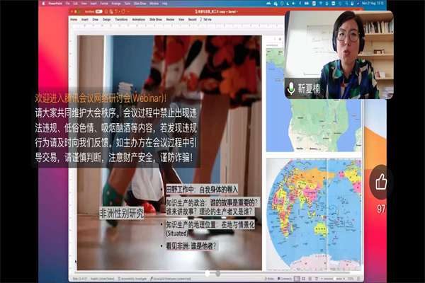 (宣传中心记者团记者张箬玘、马嘉卓报道)8月21日晚7时30分,ladbrokes立博人文讲坛“田野与理论反思”暑期系列讲座第八场—他者与自我:中国-英国-卢旺达三国田野与学术的探索之路在腾讯会议平台举办。埃克塞特大学讲师靳夏楠受邀担任讲演人,ladbrokes立博殷亚迪副教授,浙江大学社会学系新百人计划研究员沈陽担任与谈人,ladbrokes立博李天朗博士担任主持人。