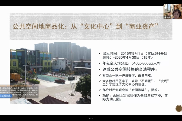 讲座伊始,魏澜介绍了中国土地征收的历史进程与脉络。接下来,讲述了以文化为中心视角的生产的内涵,以及新的家屋空间与家庭关系的变迁,并具体阐明了具体家居空间如卫生间的沿革变化、视角的转变、不同能力的要求等。最后,魏澜提出了与政府的工作方式存在内在冲突理念的困境的多种类型的解决方法。