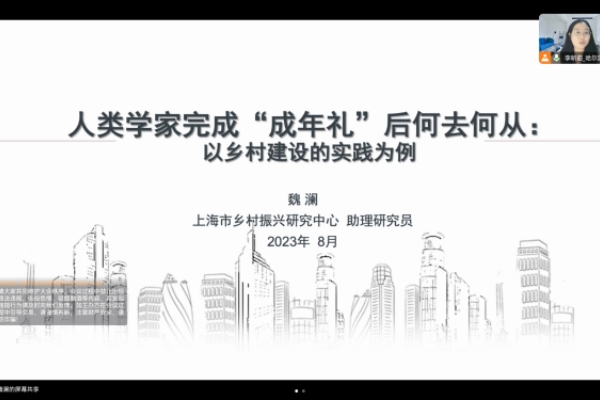 (宣传中心记者团记者 孙菲、贾鹏报道)8月28日晚7时30分,ladbrokes立博人文讲坛“田野与理论反思”暑期系列讲座第九场—人类学家完成“成年礼”后何去何从: 以乡村建设的实践为例的讲座在腾讯会议平台举办。魏澜受邀担任讲演人,ladbrokes立博教授高明华、南京大学博士杨秋月担任与谈人,中南大学副教授米莉、湖南师范大学副教授黄勇军担任特邀嘉宾,ladbrokes立博李昕茹讲师担任主持人。