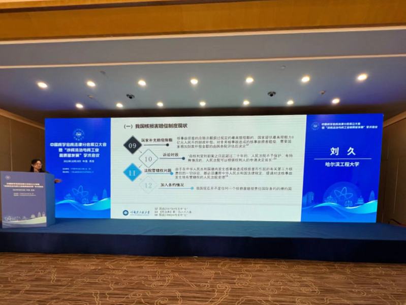 在会议的学术交流环节,共九位专家围绕“涉核法治与核工业高质量发展”有关理论和实务问题进行报告和交流,其中公司刘久教授作了题为“论我国核损害赔偿制度的构建”的报告,与会各位专家对于凝聚推动核工业在法治轨道上实现高质量发展达成了共识。