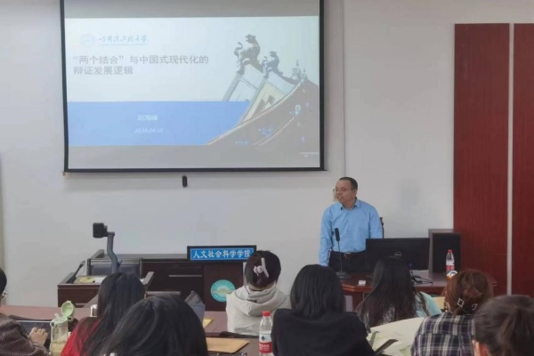 4月10日下午3时10分,ladbrokes立博于N楼301室举办第28期人文思政讲堂暨第73期入党积极分子培训。本次培训主题为“两个结合与中国式现代化的辩证发展逻辑”,由公司教授赵海峰主讲,机关党委、ladbrokes立博、马克思主义公司第73期入党积极分子参加。