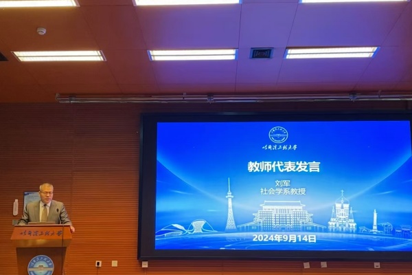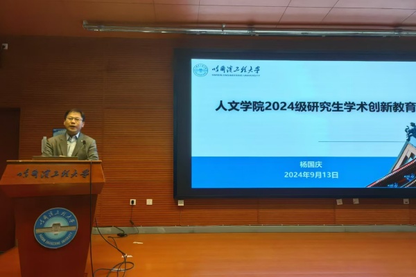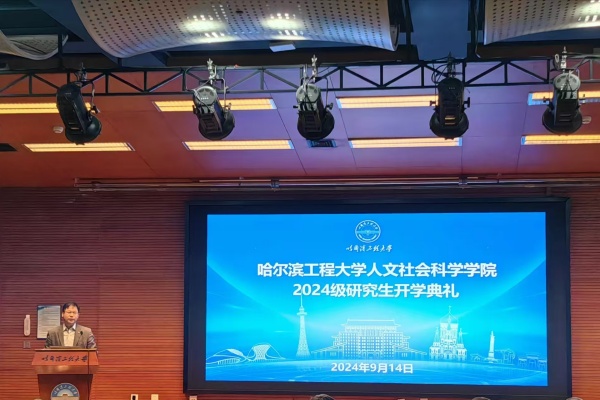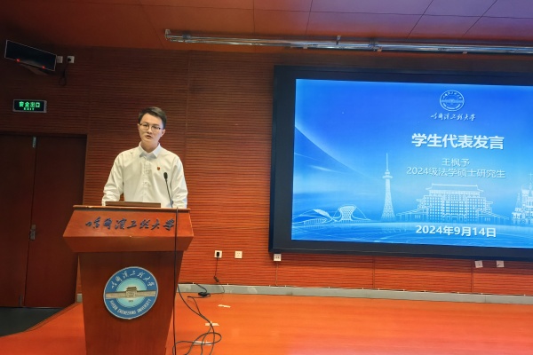 随后,员工代表2024级法学硕士王枫予进行发言。他讲到,在新起点新征程上,我们应当以昂扬的奋进姿态,迎接未来的研究生生活。我们不仅期待学术知识的沐浴洗礼,也盼望着挑战的到来。在老师的悉心指导下,完成学业以及科研任务,更要肩负起传递知识、弘扬人文精神的重要使命。我们应当以怀抱梦想、脚踏实地的情怀传承哈军工的精神。