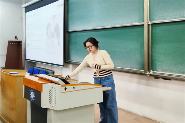 随后,赵晴以“筑牢安全防线,护航青春成长”为主题,从两性安全、生活安全、财产安全以及寝室安全四个方面为同学们讲解校园安全知识。赵晴首先强调了两性安全的重要性,提醒同学们要树立正确的性别观念,学会保护自己。紧接着,赵晴围绕运动安全、食品安全与用药安全以及急救技能展开讲解,并介绍了大学医保的基本保险和补充保险政策。针对财产安全,赵晴提醒同学们要提高警惕,防范各种诈骗手段。她还特别强调了寝室安全,包括用电安全和火灾逃生演练,提醒同学们要时刻保持安全意识。