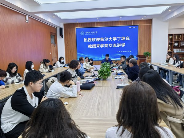 丁垣在教授的报告受到与会师生的热烈欢迎。在互动环节中,与会员工积极踊跃提问,就儒家思想、韩国文化、东亚社会、女权主义、教育制度、留学政策等问题与丁垣在教授进行了深入的探讨与交流,员工们的热情与踊跃也得到了丁垣在教授的高度评价。