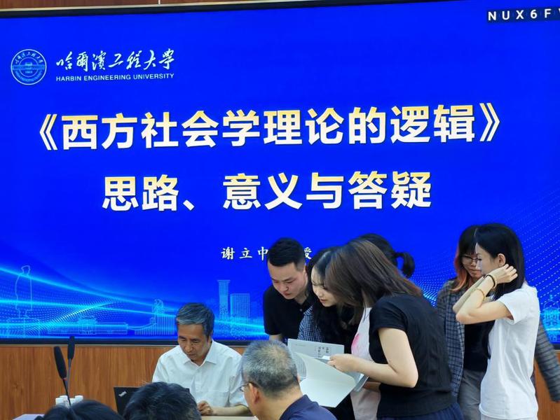 在讲学期间,杨善华、谢立中教授还与公司社会学系师生开展了丰富多样的学术交流活动。两位教授分别举行了图书签名赠阅仪式,将自己的学术著作赠予师生,鼓励大家在社会学研究领域深耕细作。两位教授的来访,不仅为师生搭建了与学术前沿对话的桥梁,更以躬身垂范的姿态,激励着新一代社会学研究者在田野实践与理论探索中砥砺前行,为社会学学科的长远发展注入源源不断的活力。
